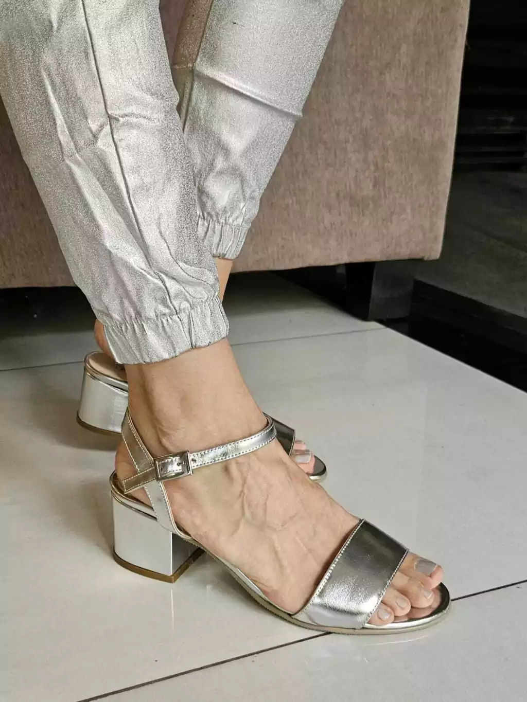 VICKY : Elegancia y comodidad en cada paso con nuestras sandalias taco bajo , de cuero 100% vacuno liso, color plateado. Con una pulsera fina que aporta un toque de sofisticación, estas sandalias son muy livianas, ideales para el uso diario.